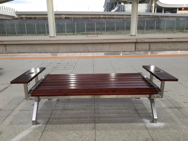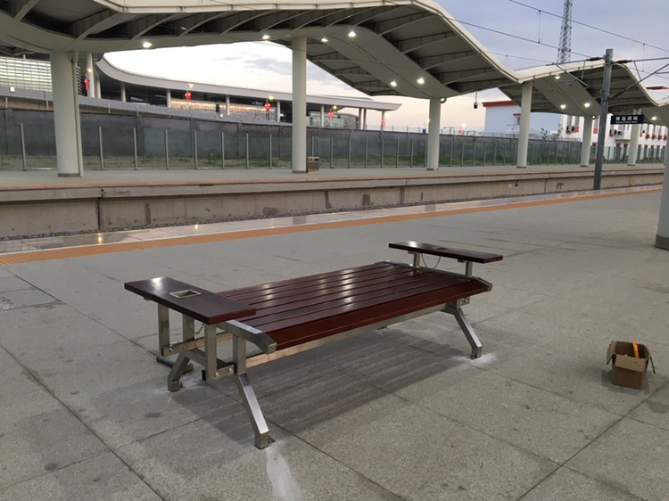 目前,青島西站使用中的站臺(tái)臺(tái)面共有4個(gè),在每個(gè)臺(tái)面分別安裝4套座椅,我們鑫金邦的同事用時(shí)2天將所有站臺(tái)不銹鋼椅子安裝完成。這款座椅支架由防銹不銹鋼支架制作而成,其他部位皆是木質(zhì)材質(zhì),外觀大氣、上檔次,左右手的帶不銹鋼煙灰缸的扶手更加體現(xiàn)了其人性化的設(shè)計(jì)。